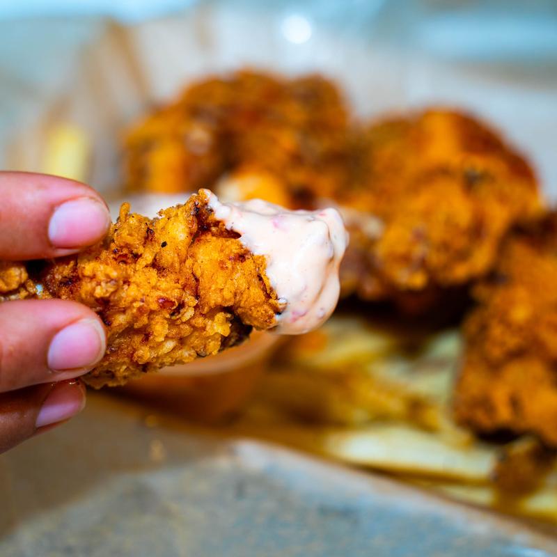 The chicken tenders were delicious. Nice light fried batter soft and juicy. Made to order. The fries are by far the best I've had in Charlottesville. Thin, freshly cooked and done perfectly. Will definitely be back!
